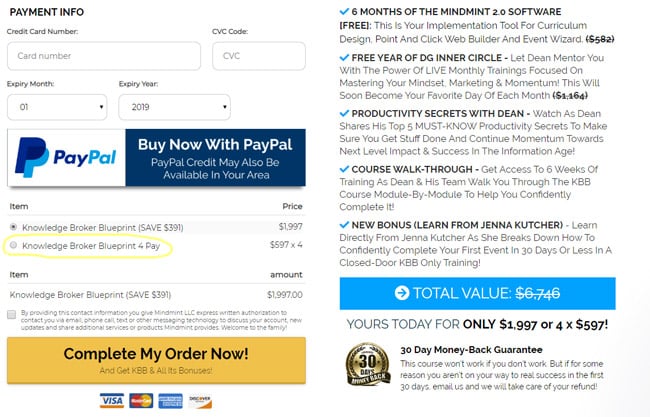 - Another payment plan for the high-price product ($997 or $297 x 4 payment)